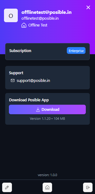 - Software Version: Displays the current version of the Posible software you are using (e.g., Version 1.0.0).