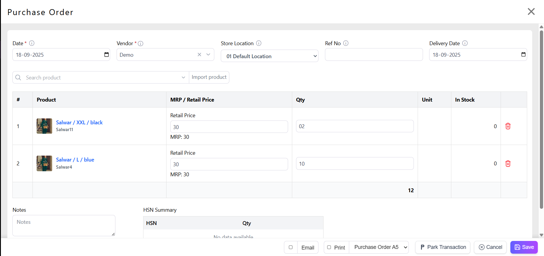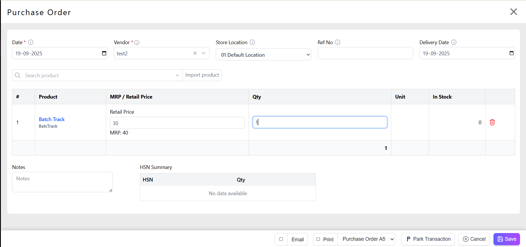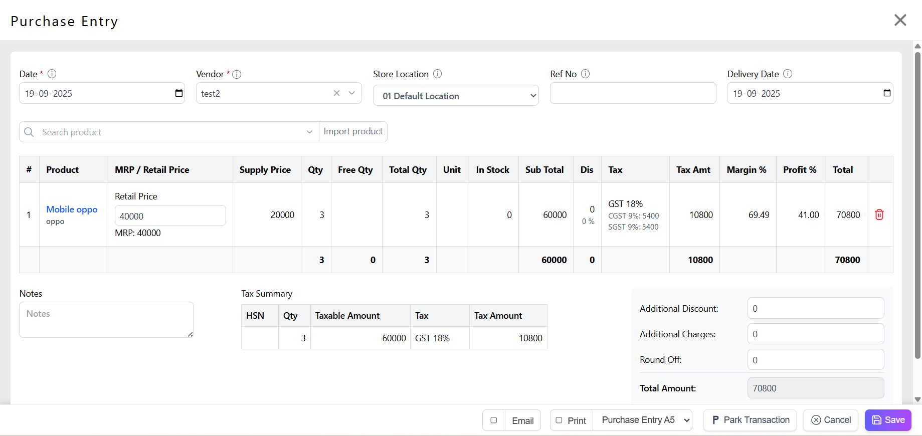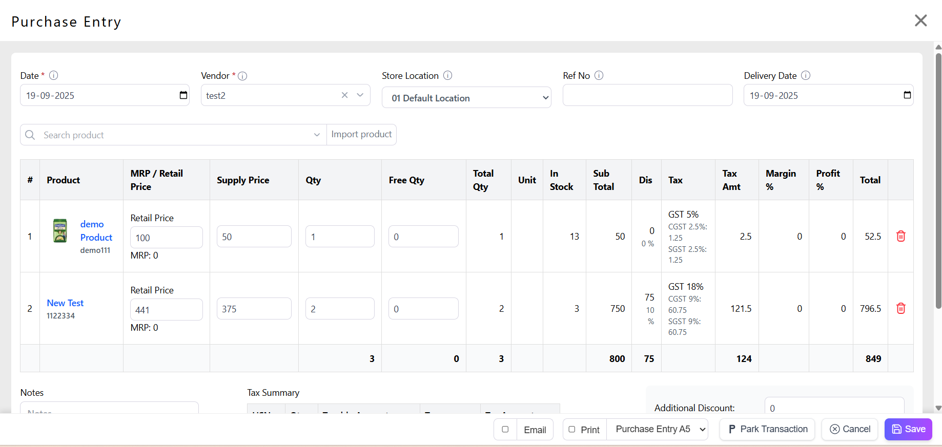 Fill Pricing and Tax: Supply Price (cost), Retail Price, MRP, Tax (GST %, VAT).