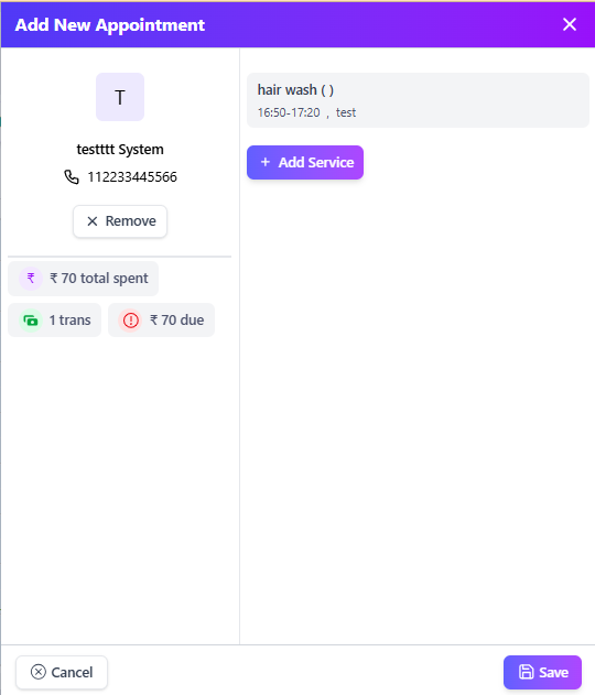 Example: "hair cutting" ₹250.