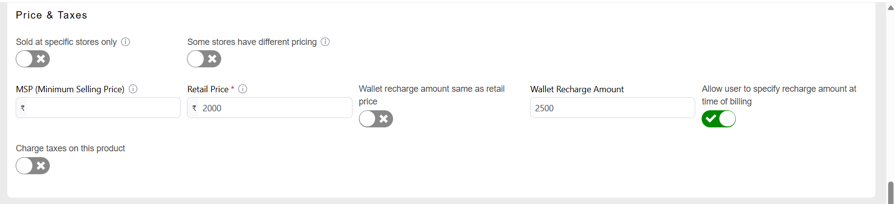 - Wallet Recharge → top-up product for wallet → no inventory.(2000 Wallet Recharge).