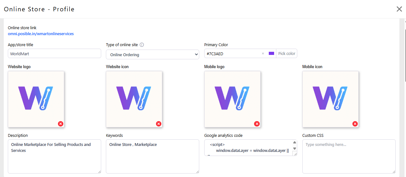 Description — short store description for search engines.
