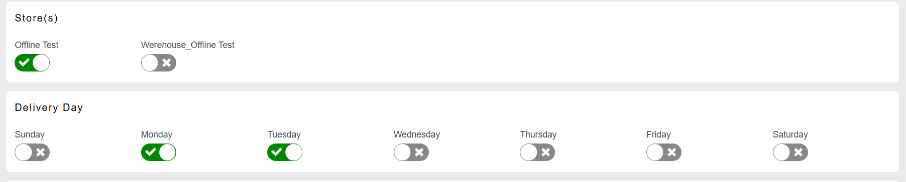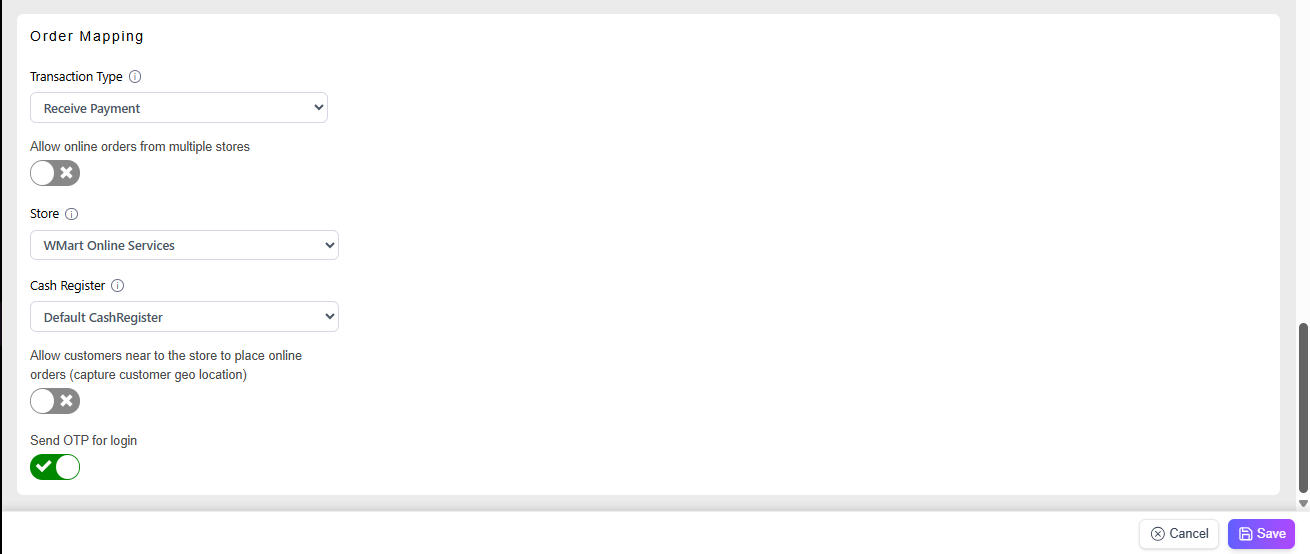 Cash on delivery, Wallet, Loyalty, — toggle on if you accept.