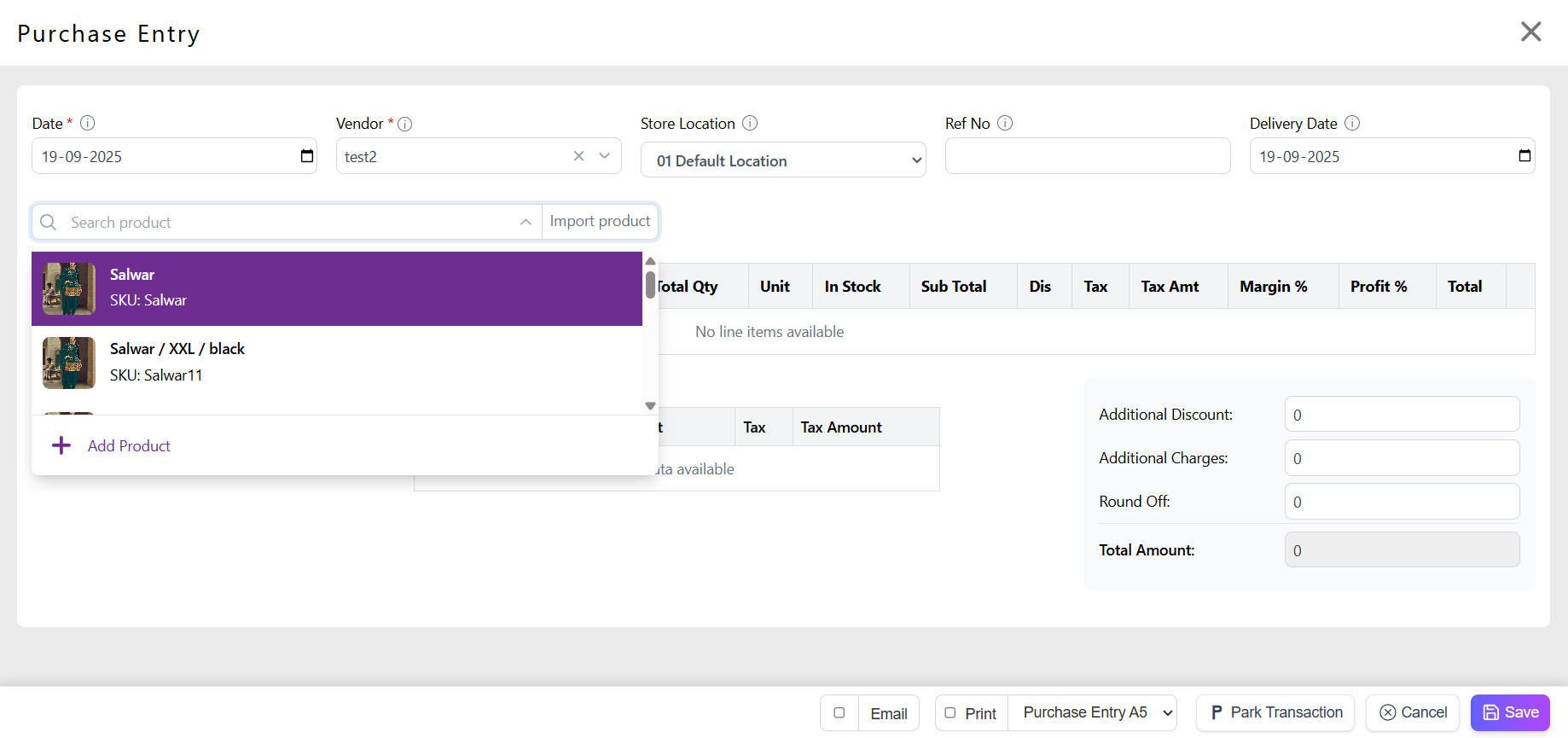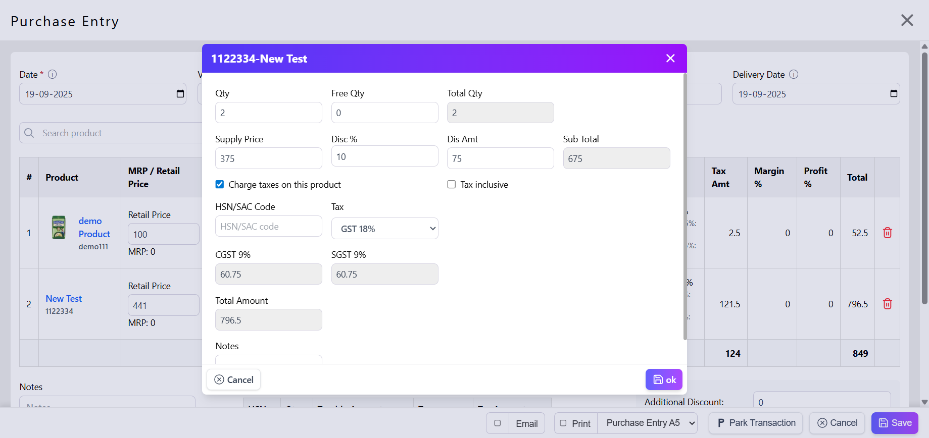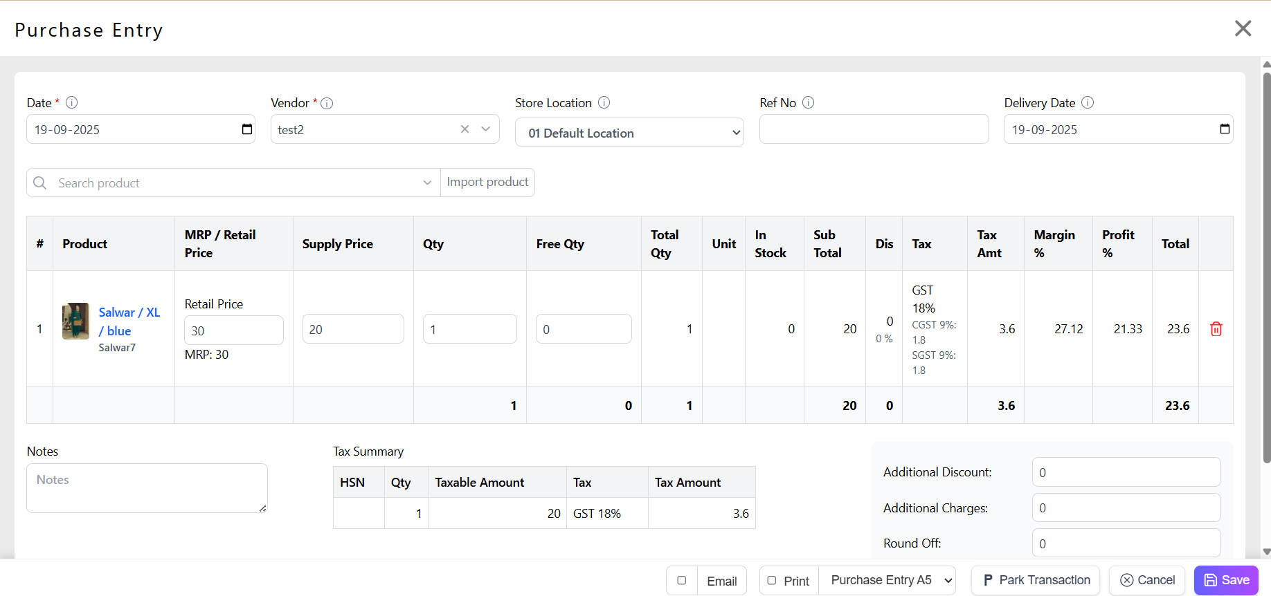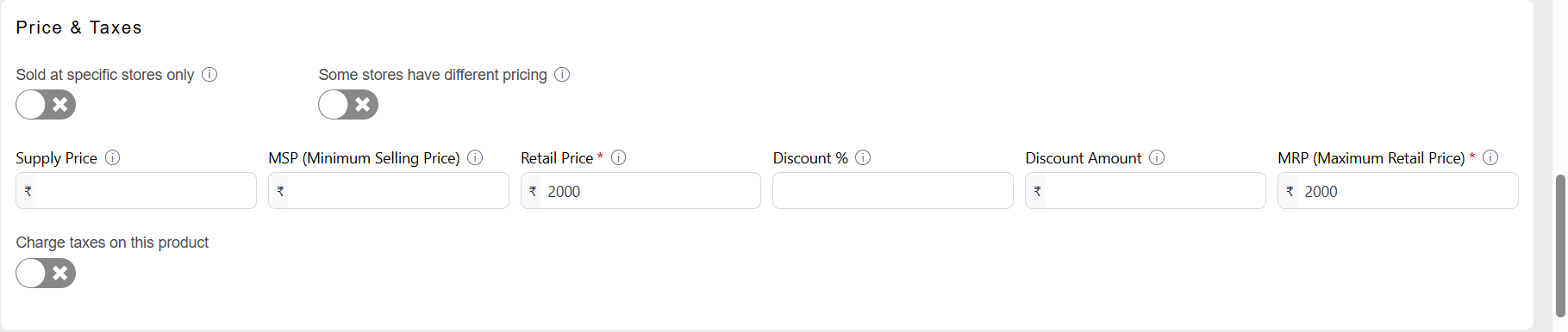 Fill Pricing and Tax: Supply Price (cost), Retail Price, MRP, Tax (GST %, VAT).