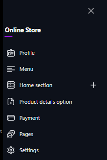 The Online Store module lets you build and publish a simple storefront (catalog or full store) where customers can view products, make orders or contact you. Use Profile to set basic store identity, Menu & Home section to control layout, Product details to customize product pages, Payment to enable payment methods, Pages to add content pages, and Settings to control store behaviors and visibility.